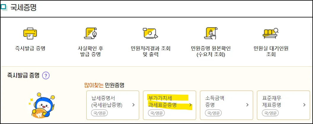 ⑦ 부가가치세과세표준증명