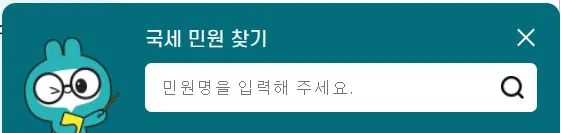 또는 화면 창 아래의 국세민원 찾기에서 민원명을 입력하셔도 됩니다.
