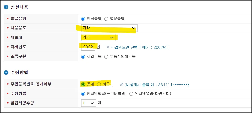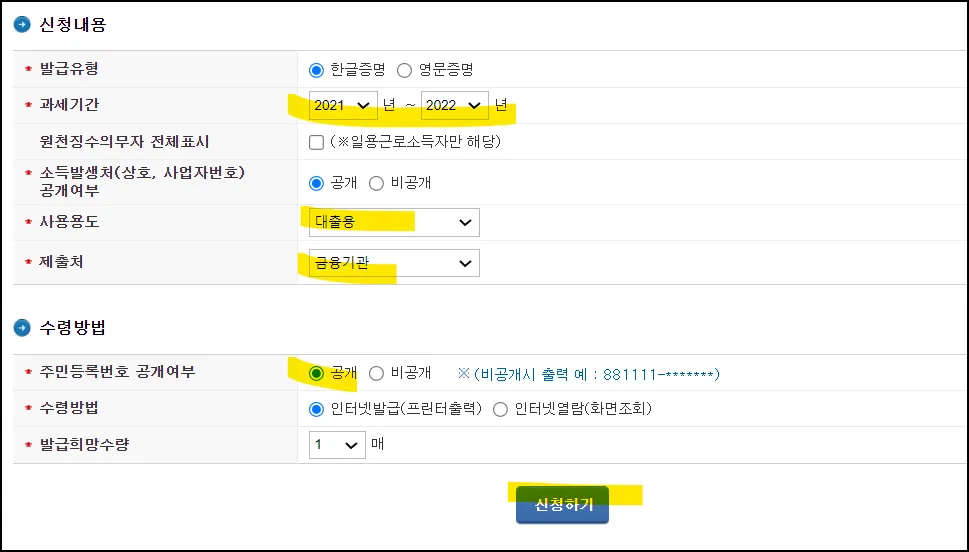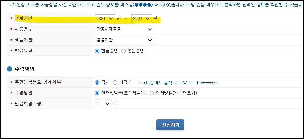 2022년, 2021년 ,2020년이 필요하다면 3번 신청해야 합니다.