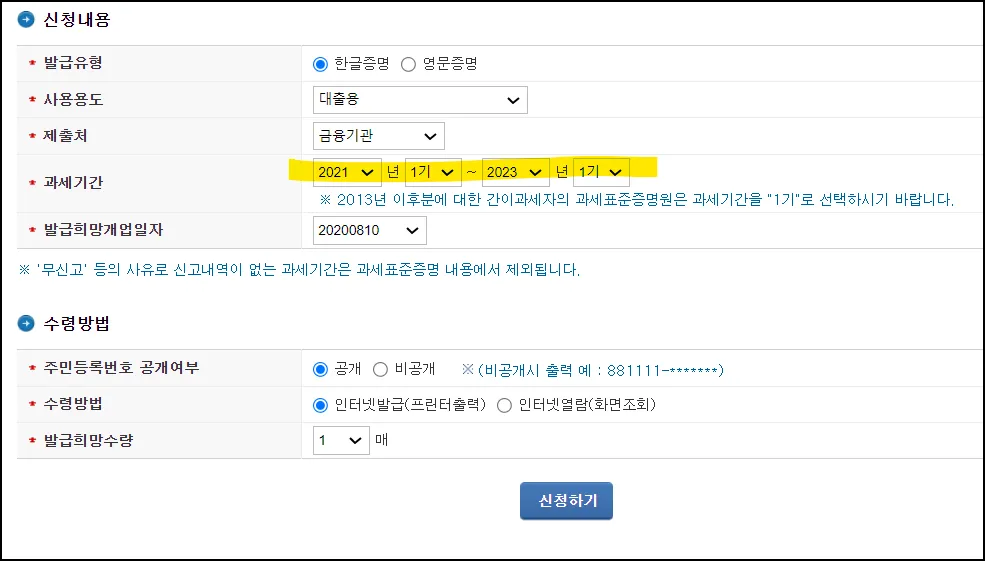 과세기간을 설정할 수 있습니다 _면세사업자의 경우 수입금액 확인을 위해서 면세사업자수입금액증명을 발급하면 됩니다.