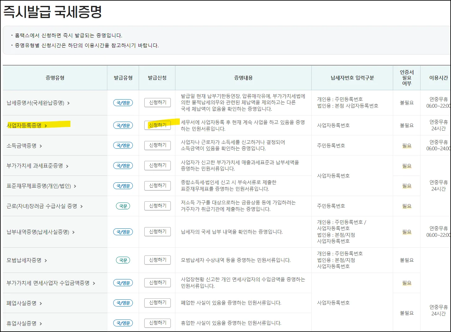 홈택스 | ①사업자등록증명