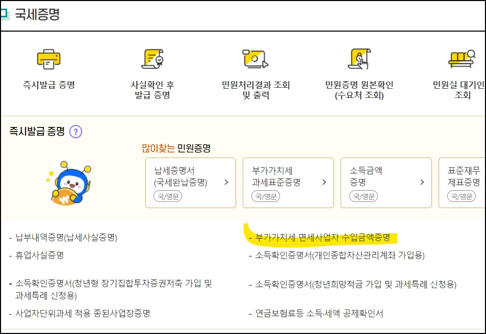 ⑧ 부가가치세면세사업자 수입금액증명