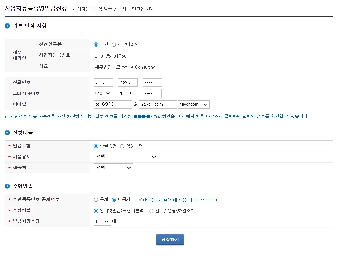 사업자등록증명 발급받기