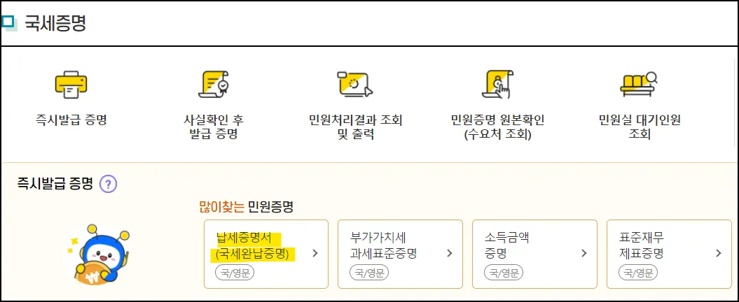 국세완납증명서 발급받기