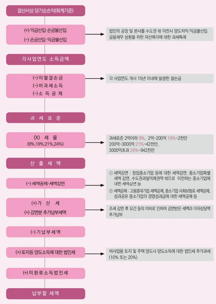 법인세는 1사업연도(1회계기간)동안 법인의 사업에서 생긴 소득을 기준으로 내는 세금입니다. 내국법인이랑 국내외 모든소득을 외국법인이라면 국내원천소득에 대해서 법인세를 납부해야 합니다.