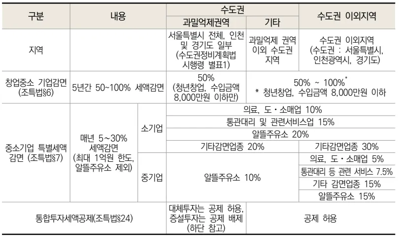 ※ 수도권 내 지식기반사업을 영위하는 중기업 감면 종료(조특법 §7)