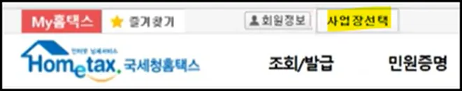 공인인증서등을 통하여 홈택스에 로그인합니다. 이때 사업장을 선택화면이 뜬다면 사업장을 선택해주시기 바랍니다.