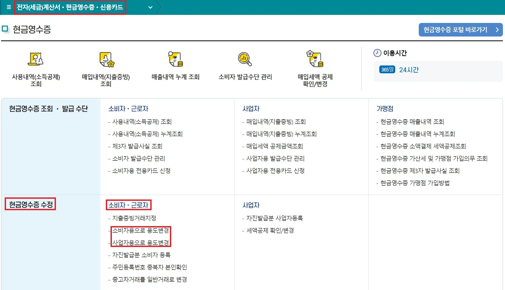 현금영수증을 실제 용도와 다르게 발급받은 경우, 홈택스에서 잘못 발급된 현금영수증을 직접 선택하여 용도 변경을 신청할 수 있습니다.. (홈택스 - 전자(세금)계산서·현금영수증·신용카드 - 근로자·소비자 조회/변경 - 현금영수증 소비자용으로 용도변경 또는 사업자용으로 용도변경)