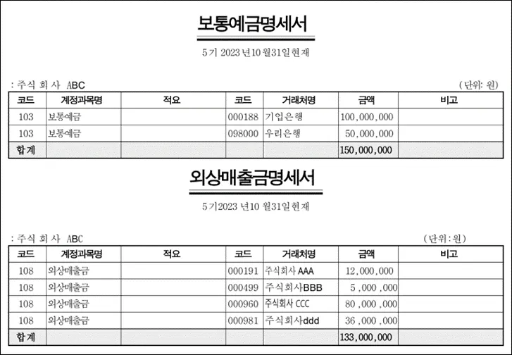 1) 매출 : 매출액 (공급대가 : 부가세제외: XX,XXX,XXX원