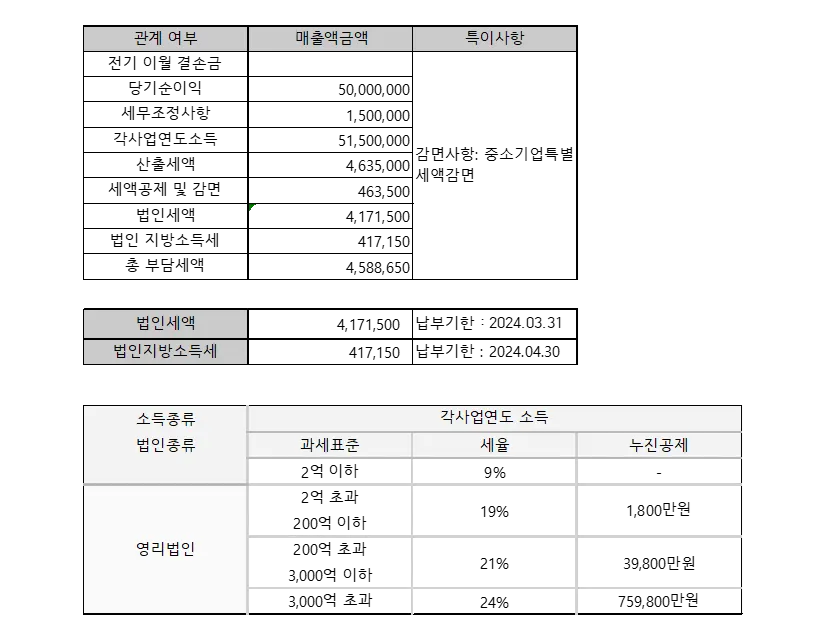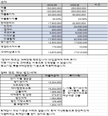 연간1회 가 결산 내용 _간단한 매출,비용,손익과 예상세금