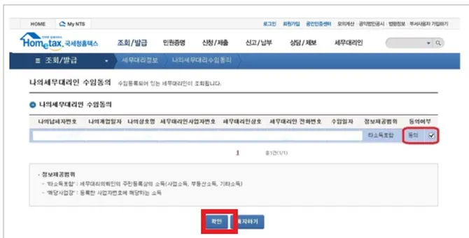 홈택스를 통한 수임동의 방법