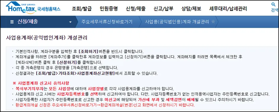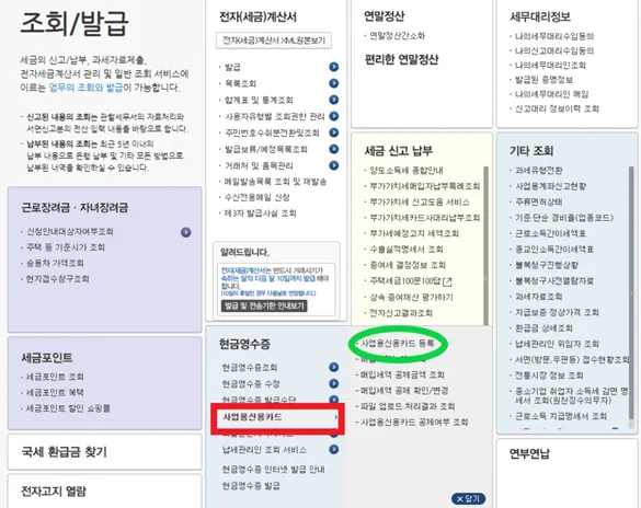 등록(사업용신용카드,사업용계좌등록,현금영수증가맹)