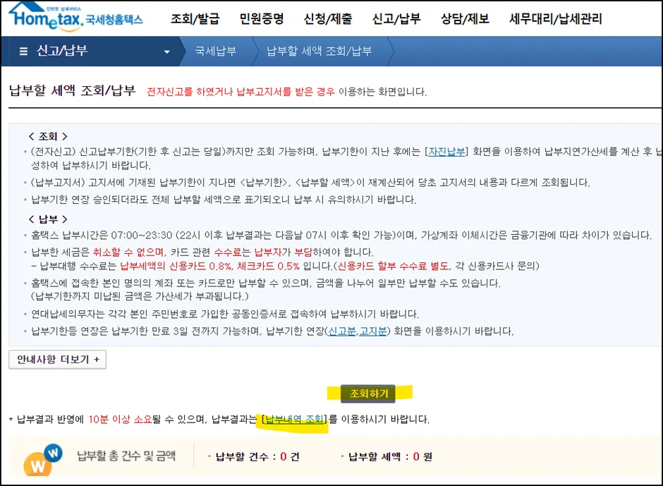 주의! 신용카드 납부시 0.8% 수수료 발생, 체크카드 납부시 0.5% 수수료 발생