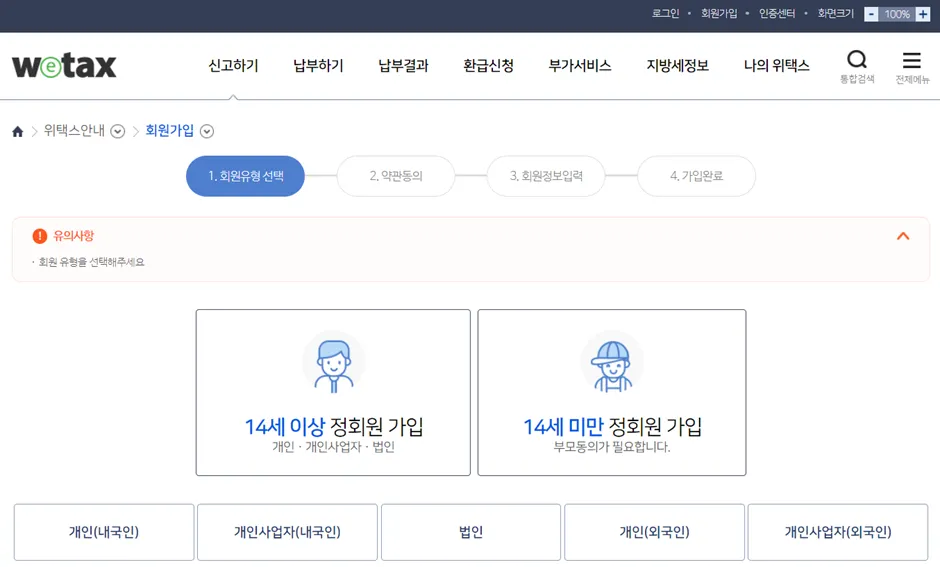 위택스(http://www.wetax.go.kr) 회원가입